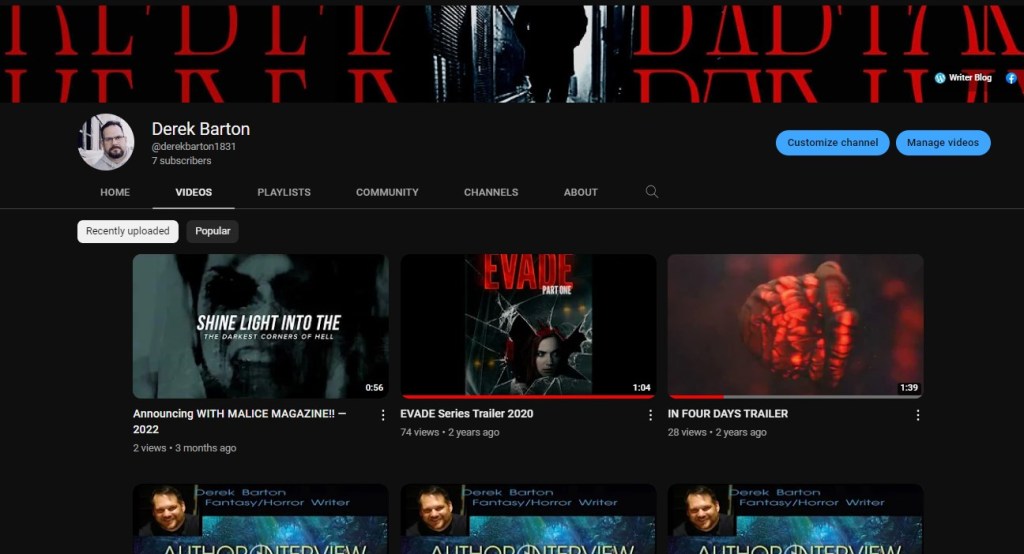 I also have a small Youtube Channel featuring Book Trailers for almost all of my novels. Watch them HERE!
