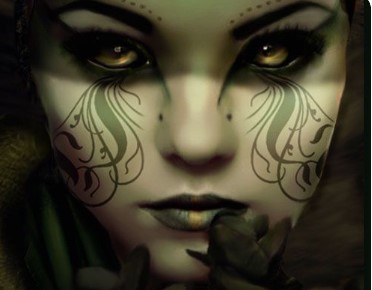 “Dirithi…” he moaned in awe as he took in the sight of her illuminated features. Her true heritage of blackened eyes and ivory, spiky skin.